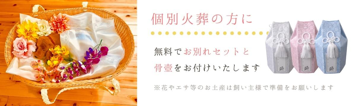燃えない物やえさ入れ等の大き目のプラスチック、ベッド等のクッションは一緒に火葬できないのでご遠慮いただいておりますが、燃えるものであればできるだけ持たせてあげたいので、一度お持ちいただきその場で選定させて頂いております。葬 儀 の ご 案 内